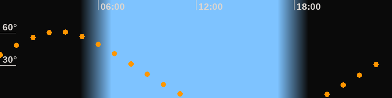 Höchster Stand (Kulmination)03:34 Uhr (h = 61,3°)