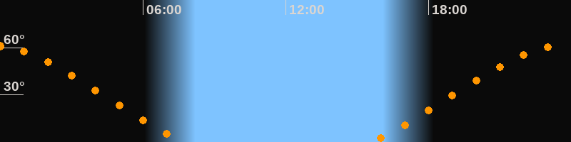 Höchster Stand (Kulmination)23:38 Uhr (h = 61,3°)