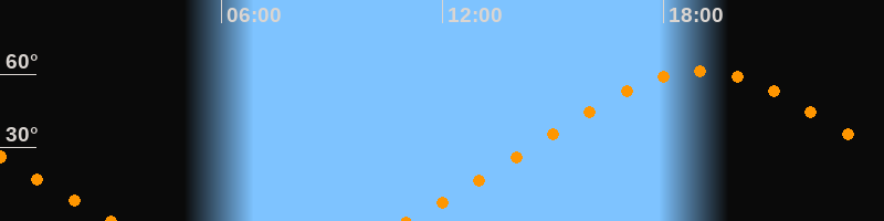 Höchster Stand (Kulmination)18:59 Uhr (h = 61,3°)