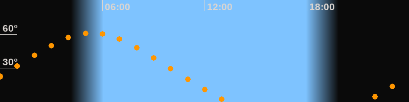 Höchster Stand (Kulmination)05:23 Uhr (h = 61,3°)