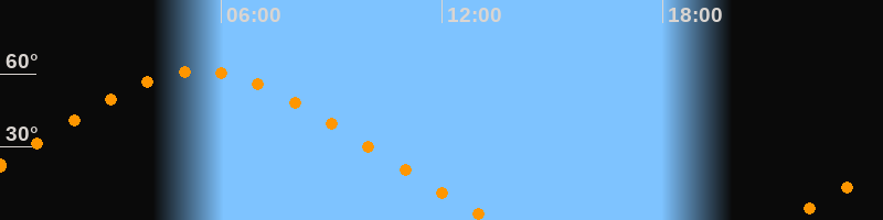 Höchster Stand (Kulmination)05:25 Uhr (h = 61,3°)