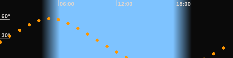 Höchster Stand (Kulmination)05:10 Uhr (h = 61,3°)