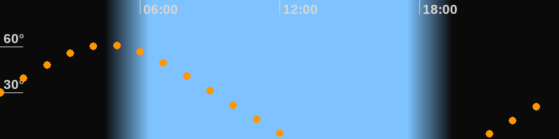 Höchster Stand (Kulmination)04:34 Uhr (h = 61,3°)