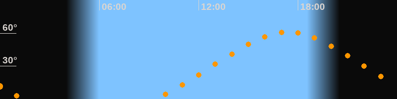 Höchster Stand (Kulmination)17:24 Uhr (h = 61,3°)