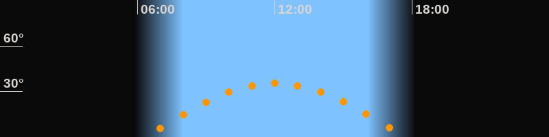 | Höchster Stand (Kulmination) | 12:01 Uhr (h = 35,4°) |