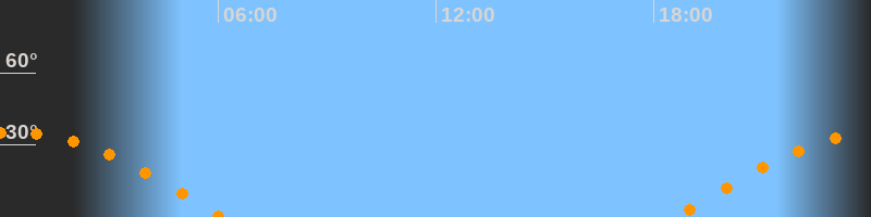 | Untergang | 06:07 Uhr im Westen (αAz = 264,5°) |