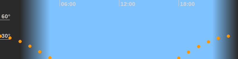 | Aufgang | 17:46 Uhr im Osten (αAz = 95,5°) |