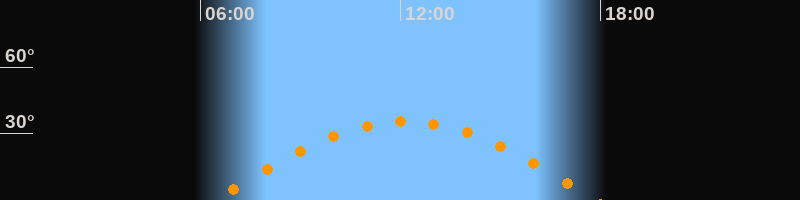 | Höchster Stand (Kulmination) | 12:09 Uhr (h = 35,4°) |