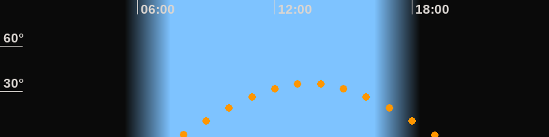 | Aufgang | 07:45 Uhr im Osten (αAz = 95,5°) |