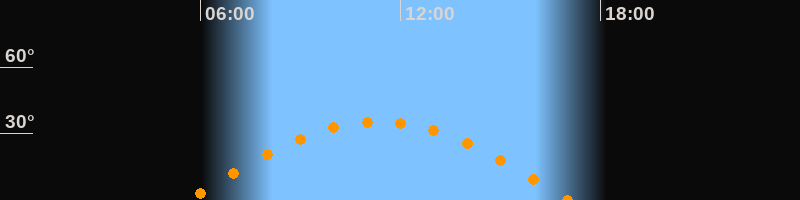 | Höchster Stand (Kulmination) | 11:20 Uhr (h = 35,4°) |