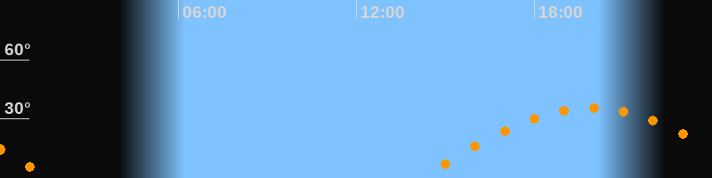 | Untergang | 01:37 Uhr im Westen (αAz = 264,5°) |