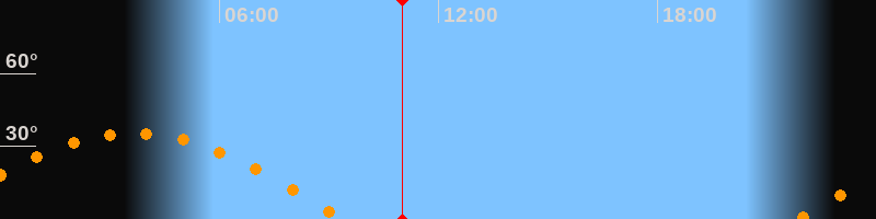 | Untergang | 09:22 Uhr im Westen (αAz = 264,5°) |