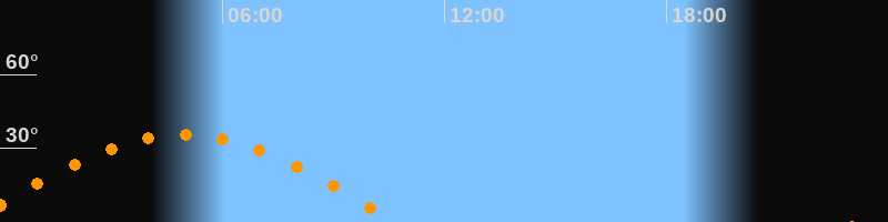 | Aufgang | 23:08 Uhr im Osten (αAz = 95,5°) |