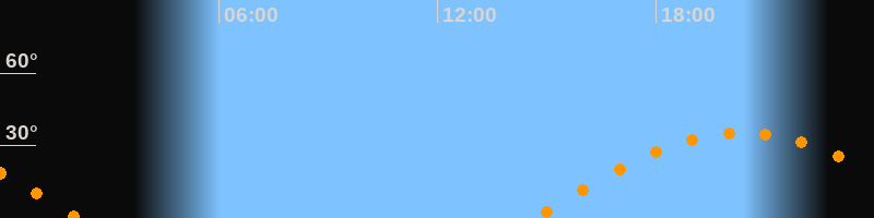 | Untergang | 02:09 Uhr im Westen (αAz = 264,5°) |
