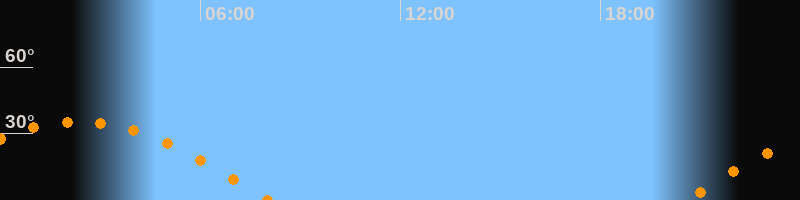 | Untergang | 08:03 Uhr im Westen (αAz = 264,5°) |