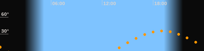 | Aufgang | 13:19 Uhr im Osten (αAz = 95,5°) |