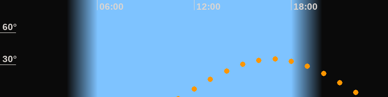 | Untergang | 22:33 Uhr im Westen (αAz = 264,5°) |