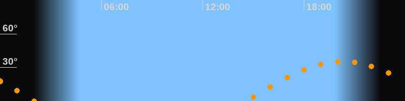 | Untergang | 02:03 Uhr im Westen (αAz = 264,5°) |