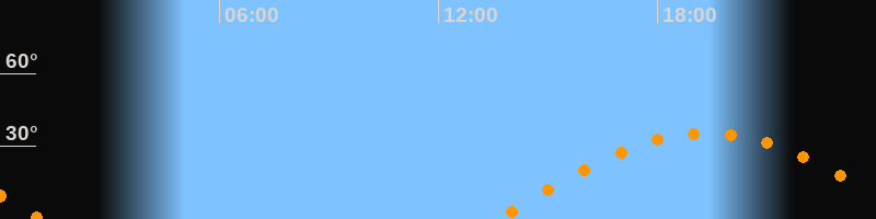 | Untergang | 01:08 Uhr im Westen (αAz = 264,5°) |