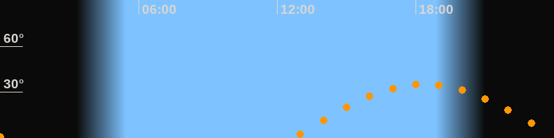 | Höchster Stand (Kulmination) | 18:23 Uhr (h = 35,4°) |