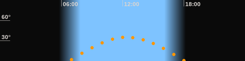 | Höchster Stand (Kulmination) | 12:25 Uhr (h = 35,4°) |