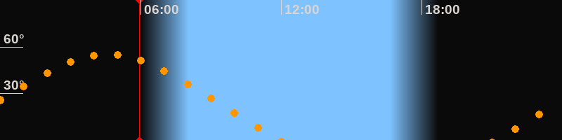| Aufgang | 21:06 Uhr im Nordosten (αAz = 63,7°) |