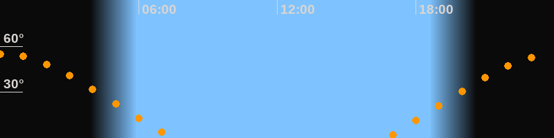 | Untergang | 07:30 Uhr im Nordwesten (αAz = 296,3°) |