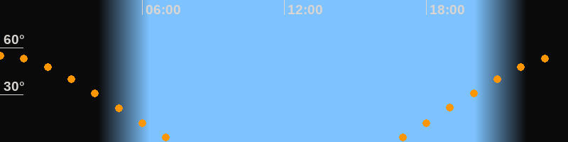 | Aufgang | 16:34 Uhr im Nordosten (αAz = 63,7°) |