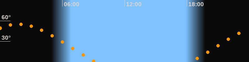 | Aufgang | 18:20 Uhr im Nordosten (αAz = 63,7°) |