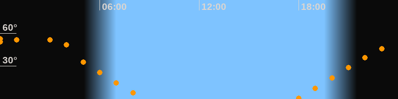 | Aufgang | 17:50 Uhr im Nordosten (αAz = 63,7°) |