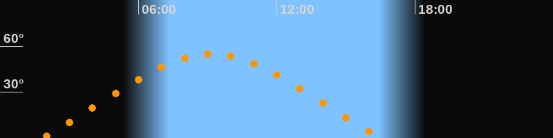 | Höchster Stand (Kulmination) | 09:10 Uhr (h = 55,1°) |