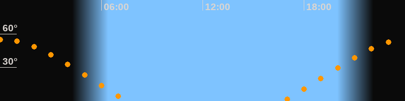 | Aufgang | 16:43 Uhr im Nordosten (αAz = 63,7°) |