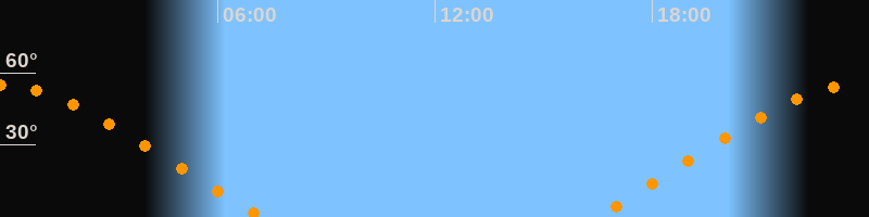 | Aufgang | 16:23 Uhr im Nordosten (αAz = 63,7°) |