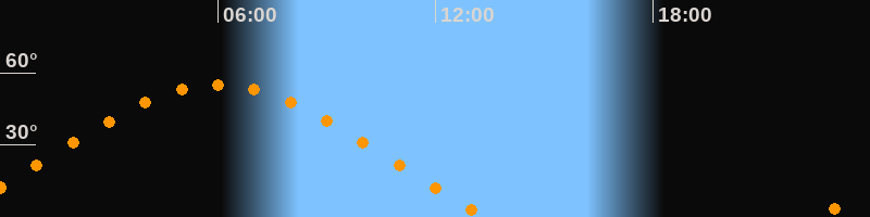 | Höchster Stand (Kulmination) | 06:00 Uhr (h = 55,1°) |