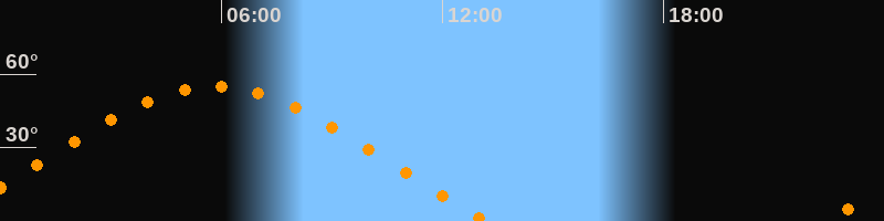 | Höchster Stand (Kulmination) | 05:50 Uhr (h = 55,1°) |
