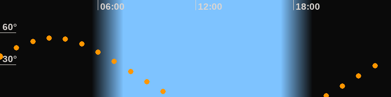 | Aufgang | 19:48 Uhr im Nordosten (αAz = 63,7°) |