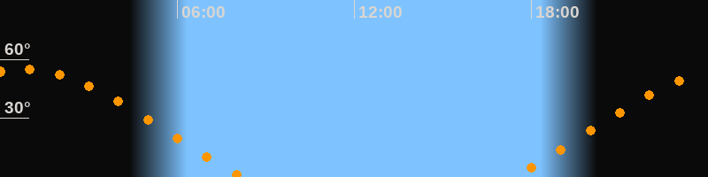 | Aufgang | 17:22 Uhr im Nordosten (αAz = 63,7°) |