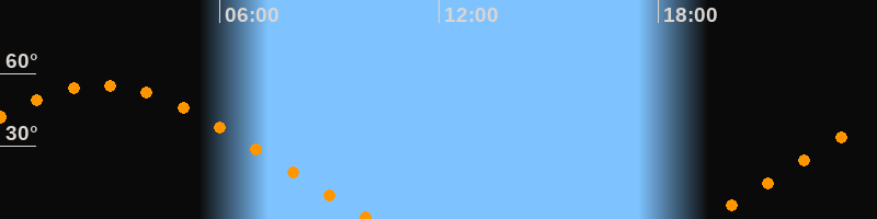 | Aufgang | 19:17 Uhr im Nordosten (αAz = 63,7°) |