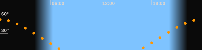 | Aufgang | 16:29 Uhr im Nordosten (αAz = 63,7°) |
