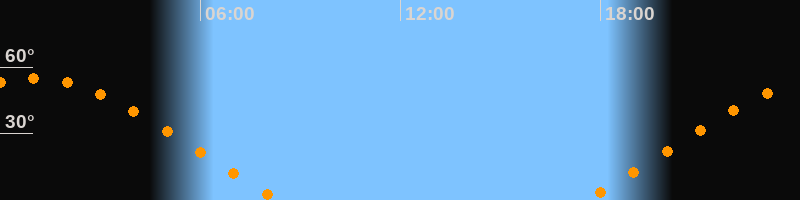 | Aufgang | 17:32 Uhr im Nordosten (αAz = 63,7°) |