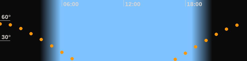 Höchster Stand (Kulmination)00:01 Uhr (h = 55,1°)