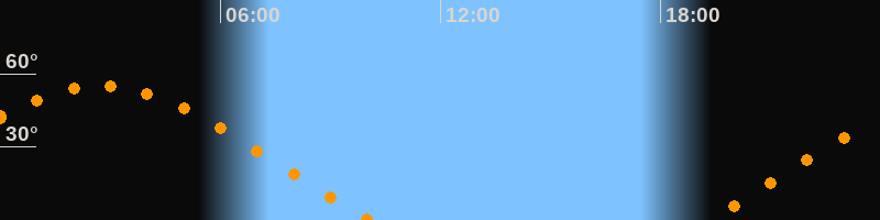| Aufgang | 19:16 Uhr im Nordosten (αAz = 63,7°) |