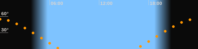 | Aufgang | 16:23 Uhr im Nordosten (αAz = 63,7°) |