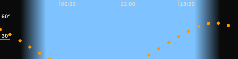 | Aufgang | 14:13 Uhr im Nordosten (αAz = 63,7°) |