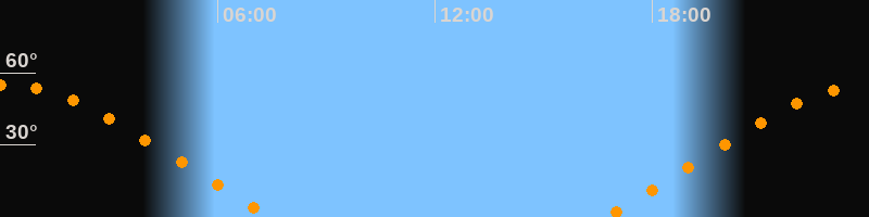 | Aufgang | 16:40 Uhr im Nordosten (αAz = 63,7°) |