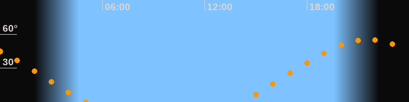 | Aufgang | 14:10 Uhr im Nordosten (αAz = 63,7°) |