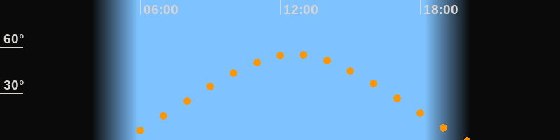 Höchster Stand (Kulmination)12:36 Uhr (h = 55,1°)