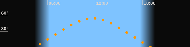 | Höchster Stand (Kulmination) | 11:40 Uhr (h = 55,1°) |