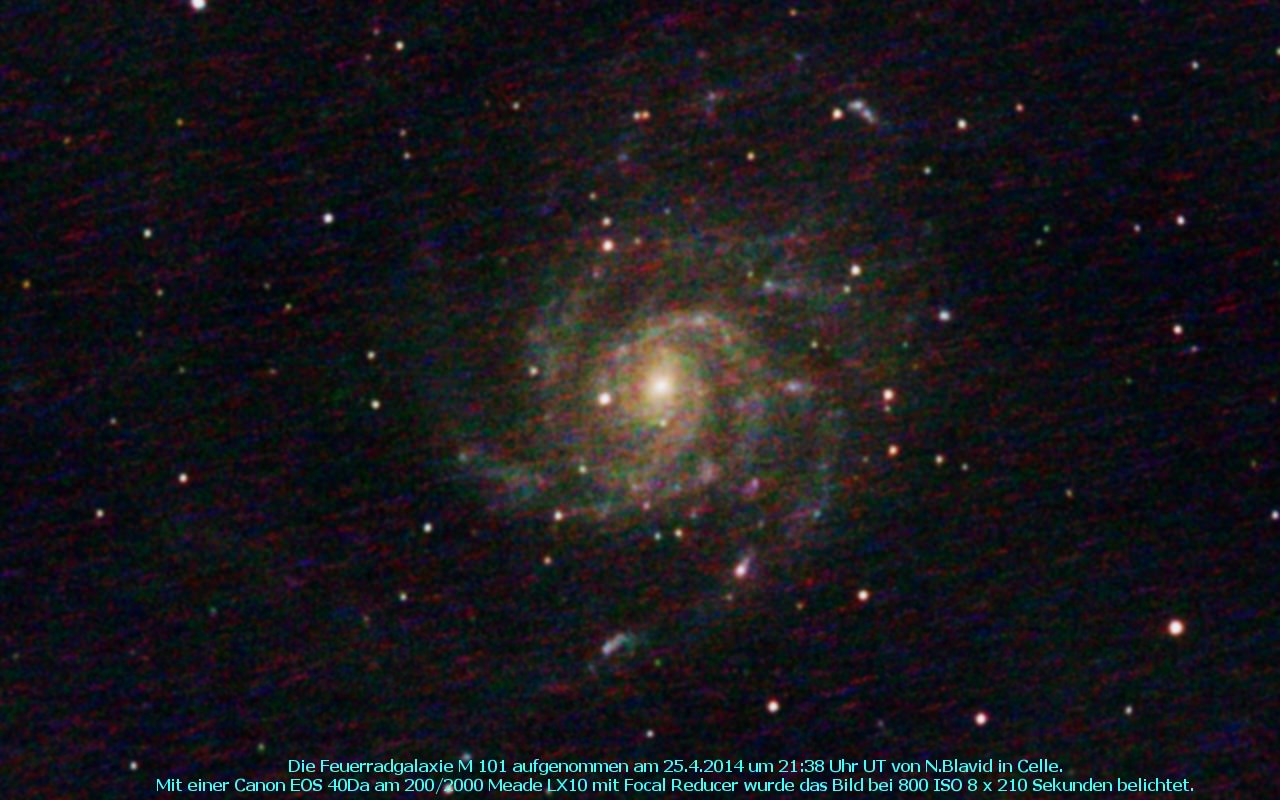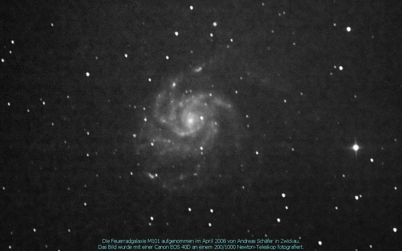 M 101 ist eine Balkenspiralgalaxie vom Typ SABcd. Entdeckt wurde sie am 27. März 1781 von Pierre Méchain.