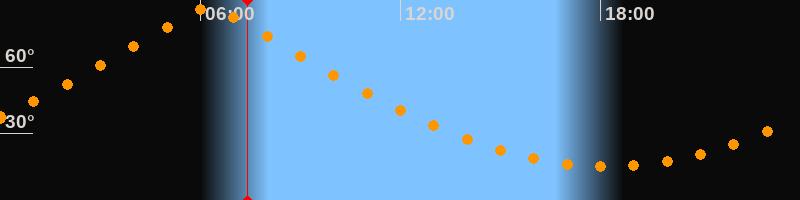 | Höchster Stand (Kulmination) | 06:14 Uhr (h = 86,4°) |